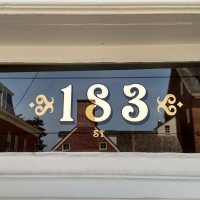 Generally, when we gild numbers onto your transom, you do not need to worry about how high they are. The transom is high above the <spa< span=””>n id=”urn:enhancement-f8231962-c841-434c-968e-e20193dfaec6″ class=”textannotation disambiguated wl-thing” itemid=”http://data.wordlift.io/wl0724/entity/door”>door</spa<>, so it is always visible from the street, even if someone is standing at your front door. Sometimes, we can create cast plaques for your house numbers too. In that case, we will install your house number plaques at eye level or above, on the handle side of your door. If you have a lamp on the front of your home, usually, we can center your plaque with the light so that it will look intentional. However, the best house number ideas are always gold leaf and palladium leaf. Indeed, if we gild your transom numbers the traditional way, you don’t even need to worry about how high the numbers should be.